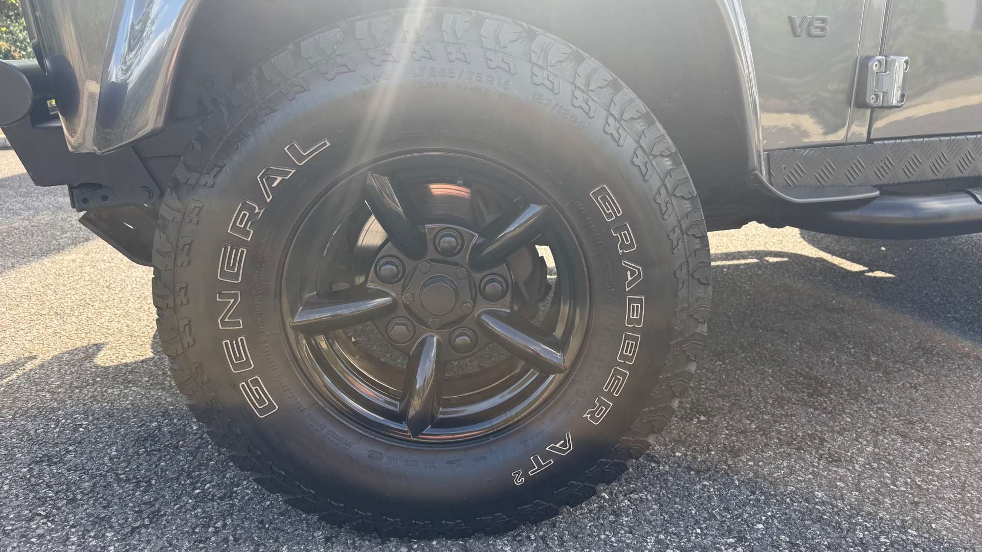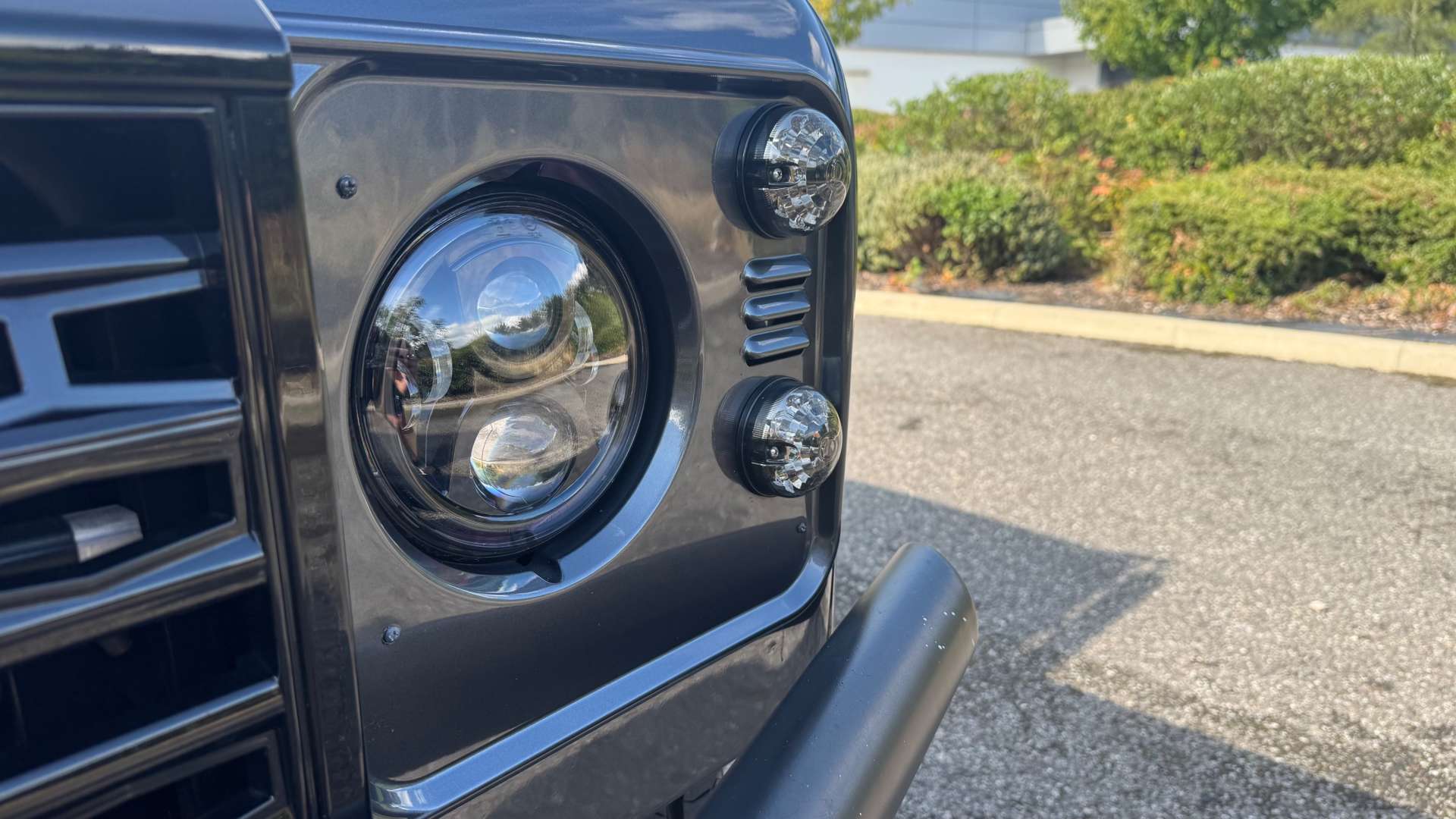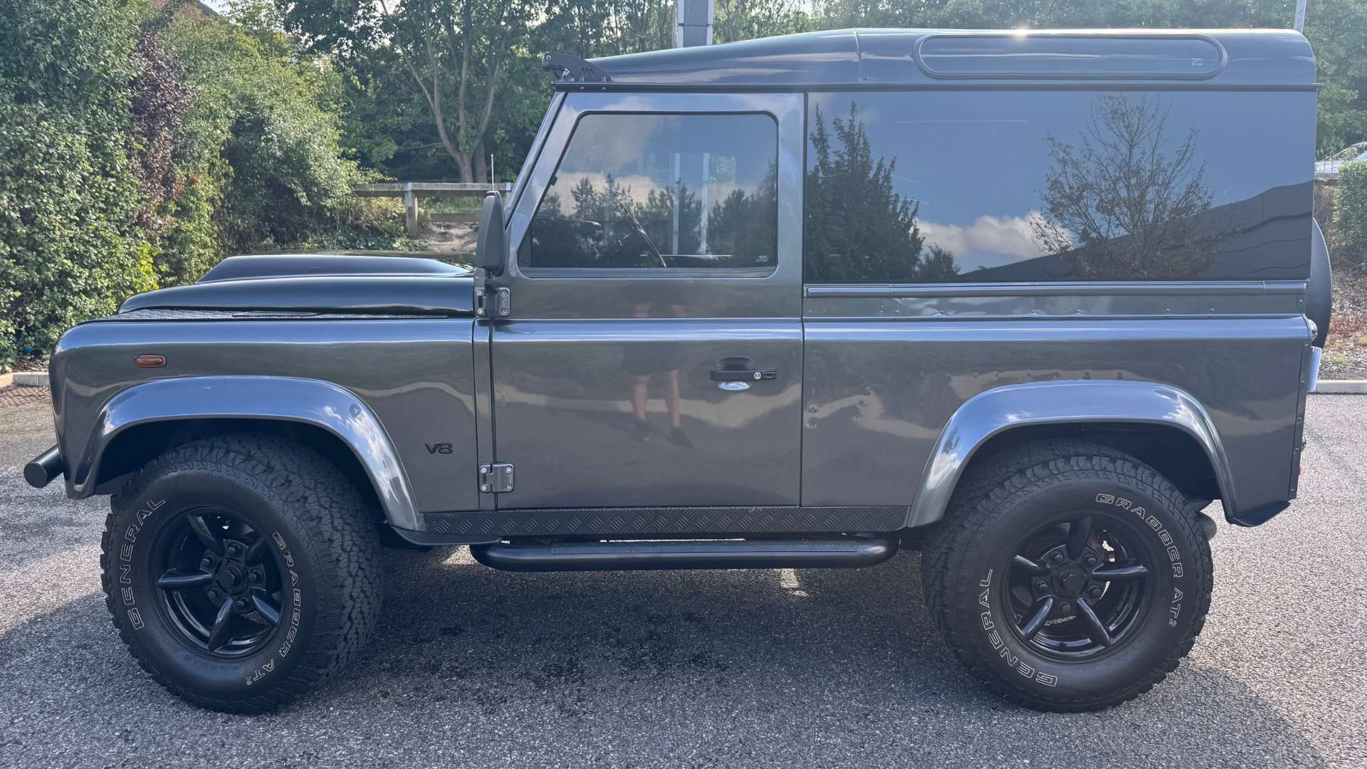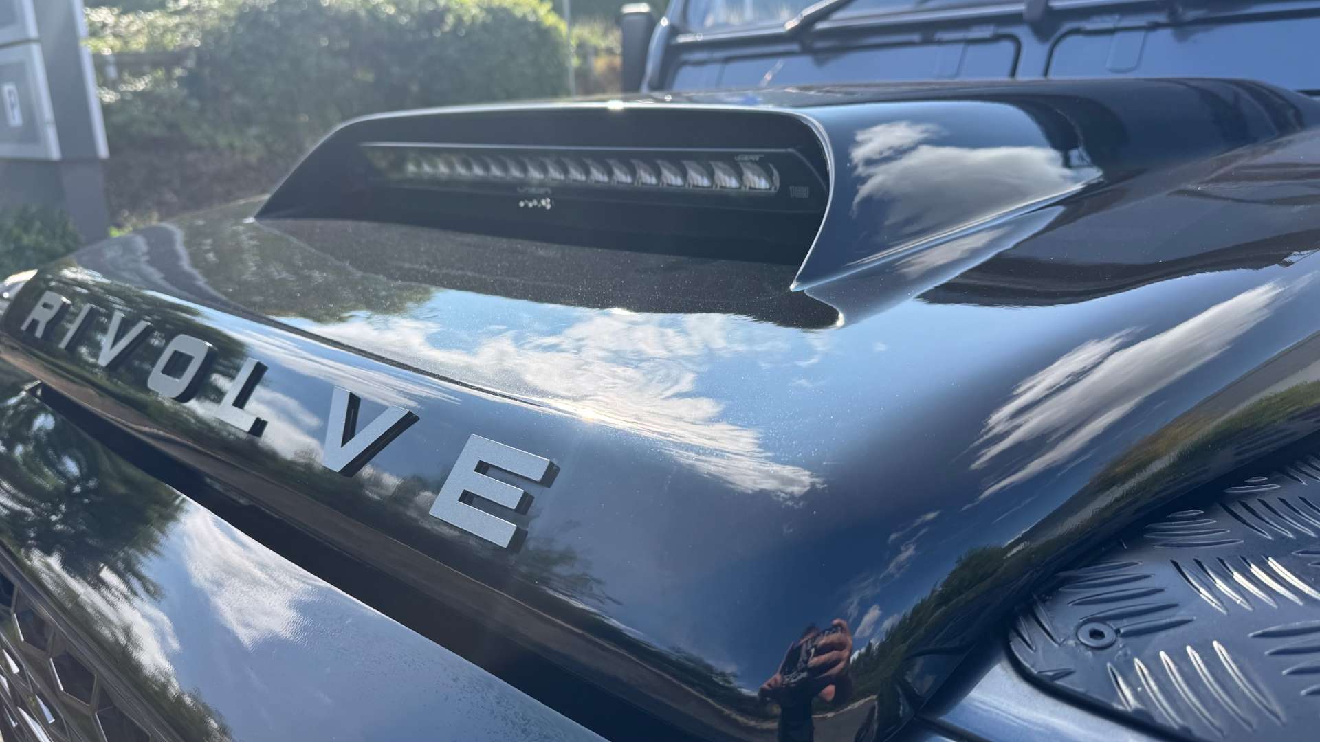 Aesthetically, it's a masterpiece. Finished in a Granite Grey Pearl Metallic, with a Santorini Black contrasting roof and bonnet, it looks like it means business. The supercharger bonnet with an integral Lazer Light bar and full-width Lazer Light Roof Bar ensure that you'll see and be seen, no matter where your adventures take you. And let's not forget the LED headlights and crystal side indicators, because why not add a touch of modernity to this classic icon?